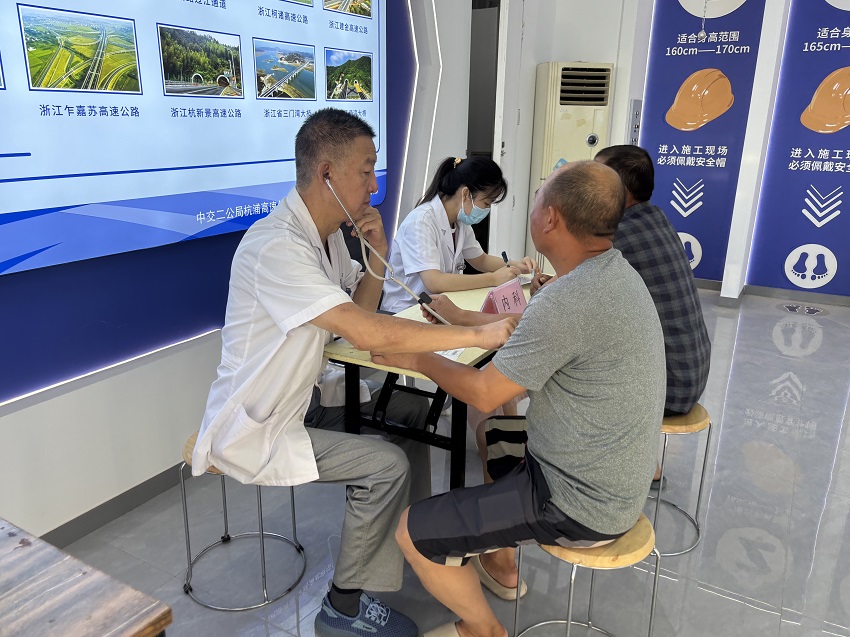 为切实保障一线作业人员身体健康,杭浦高速海盐1标项目联合海盐县人民医院体检中心组织开展 "关爱工友健康,助力施工生产" 高空作业人员专项健康体检活动。