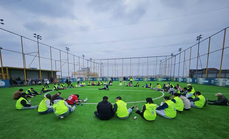 为了让陪伴更具专业性,志愿者们在活动前参加了公益组织的专项培训,系统学习孤独症儿童的行为特点、情绪表达方式,掌握陪伴技巧与应急注意事项。活动中,志愿者们提前布置好安全舒适的活动场地,以柔和的语气、耐心的陪伴与儿童交流互动,慢慢拉近距离,消解陌生感。在腰旗橄榄球活动中,志愿者以“二对一”的模式耐心引导孩子们完成列队、热身、持球、拔旗等动作。“加油!你跑得真快!”“哇,你拔到旗了,太棒了!”简单的鼓励和重复的陪伴,使孩子们渐渐放下防备,在绿茵场上奔跑起来。清脆的欢笑声在草坪上回荡,奔跑的身影与翻飞的腰旗,构成了春日里最治愈的画面。
