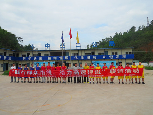 五月四日上午 ,项目部团支部在信宜市团委的组织下,项目团员与信宜市志愿者联合会举行了“践行群众路线,给力高速建设”联谊活动,双方进行了亲切友好的交流,随后进行了一场篮球友谊赛;晚上,项目部组织部分青年团员参加了信宜市青年文学艺术协会成立十周年文艺晚会,欣赏了信宜青年的歌舞、小品、书法等精彩节目。