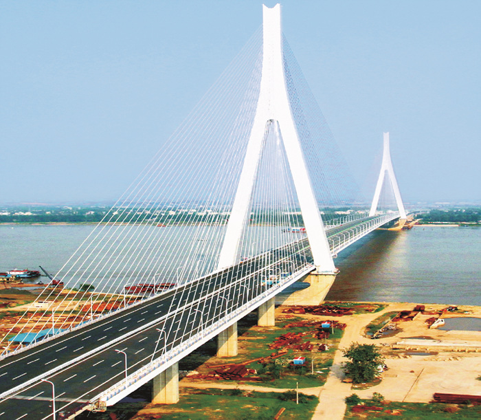 With 926m main span, East Hubei Yangtze River Highway Bridge in Hubeioccupies the world's third largest cable-stayed bridge and the second largesthybrid beam cable-stayed bridge. Hubei East Yangtze River Highway Bridge wonthe Highway Traffic Quality Engineering Award (Lichun Award), outstanding ChinaHighway Society Science and Technology Award, Hubei Province Science andTechnology Progress First Prize, etc.