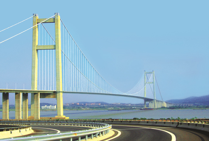 江苏润扬长江公路大桥南汊主桥为单孔双铰钢箱梁悬索桥,主跨径1490米,居当时悬索桥中国第一、世界第三。润扬长江公路大桥荣获全国十大建设科技成就奖、中国土木工程詹天佑奖、国家优质工程金奖、新中国60周年百项精品工程、国家科技进步二等奖等荣誉。