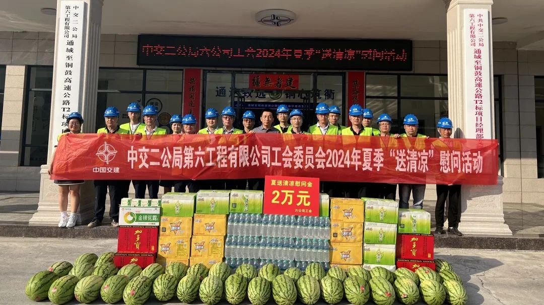 黄维科深入一线对通铜T2标项目的施工进度、安全质量环保管控、防暑降温措施等方面情况进行了现场检查,对项目当前各项施工规范标准及防暑降温工作给予了肯定,向坚守在项目一线的职工送去了藿香正气水、绿茶、西瓜等防暑降温物资。并嘱咐职工要时刻注意身体健康,合理调整作业时间,做好防暑降温各项措施和安全防范措施,确保安全生产。