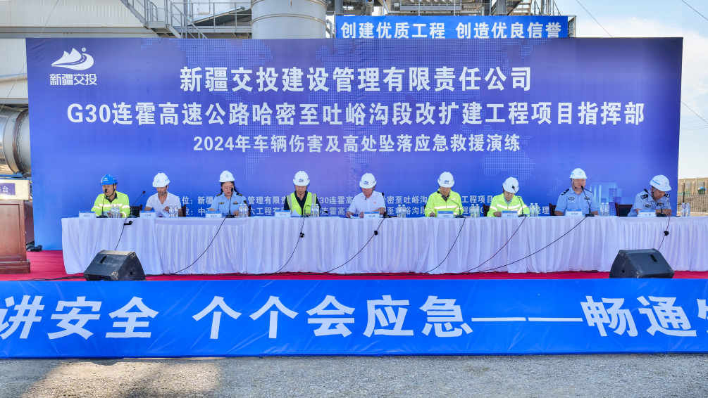 8月17日,由G30连霍高速哈吐改扩建项目指挥部主办,G30哈吐8标承办的车辆伤害及高处坠落应急演练成功举行。