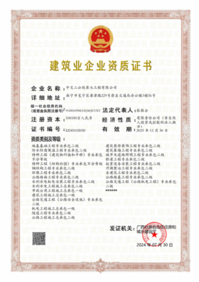 地址:广西南宁市良庆区宋厢路16号太平金融大厦22层 电话:0771-5822220 邮箱:egjqgs@ccccltd.cn