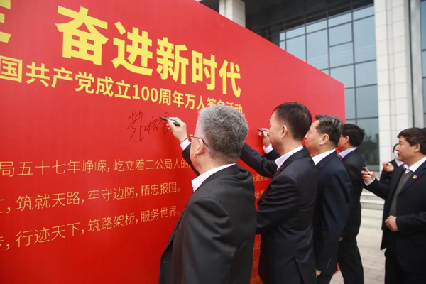 “我志愿加入中国共产党,拥护党的纲领,遵守党的章程……”3月17日上午,在秦岭脚下局国家级技术中心广场上,300多名党员面对鲜红的党旗齐声重温入党誓词,并在“永远跟党走、奋进新时代”的展板上签名,郑重许下“不负重托,奋进新程,为民族复兴的伟大事业再创辉煌”的铮铮誓言。一面党旗、心中飘扬,一片丹心、日月可鉴。