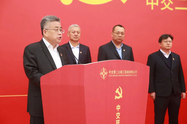 局党委书记、董事长赵桢远表示,中交二公局作为中央企业,始终坚持党的领导、牢记国家使命、传承红色基因,从上世纪60年代的青藏、川藏公路开始,50多年砥砺奋进,为国家交通建设和经济发展作出了应有贡献。今年是中国共产党成立100周年,党史学习教育正在全面展开,中交二公局也正在立足新发展阶段,贯彻新发展理念,紧抓构建新发展格局的历史机遇,加快转型升级,全力推动高质量发展,为全面建设社会主义现代化国家再立新功、再做贡献。这次动员大会,就是要全面动员全局4000多名党员和1万多名职工,牢记国有企业的职责使命、牢记人民群众对美好生活的向往、牢记新时代共产党人的使命担当,争做百年荣光的传承者、开启新局的奋斗者、红色基因的赓续者、职责使命的承担者,以锐意进取的心态、昂扬奋发的状态、积极有为的姿态,奋进“十四五”、迈进新征程,掀起施工生产热潮,全面推动年度任务精准落地,以实际行动庆祝建党100周年。