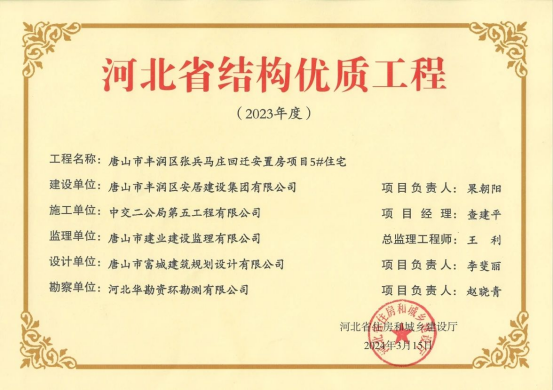 近日,河北省住房和城乡建设厅公布了2023年度“河北省结构优质工程”名单,唐山安置房项目5#楼、6#楼住宅荣登“河北省结构优质工程”榜单。