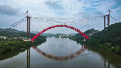 9月1日,随着大桥两侧节段钢梁焊接完成,平岑高速公路TJ5标北流河特大桥拱肋顺利合龙!