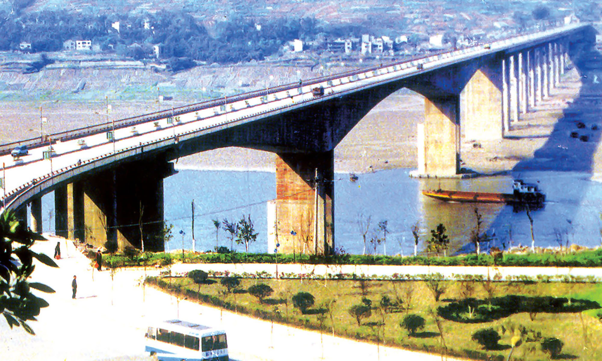 1360米,上部结构为预应力砼连续刚构,1995年4月开工,1997年12月通车。