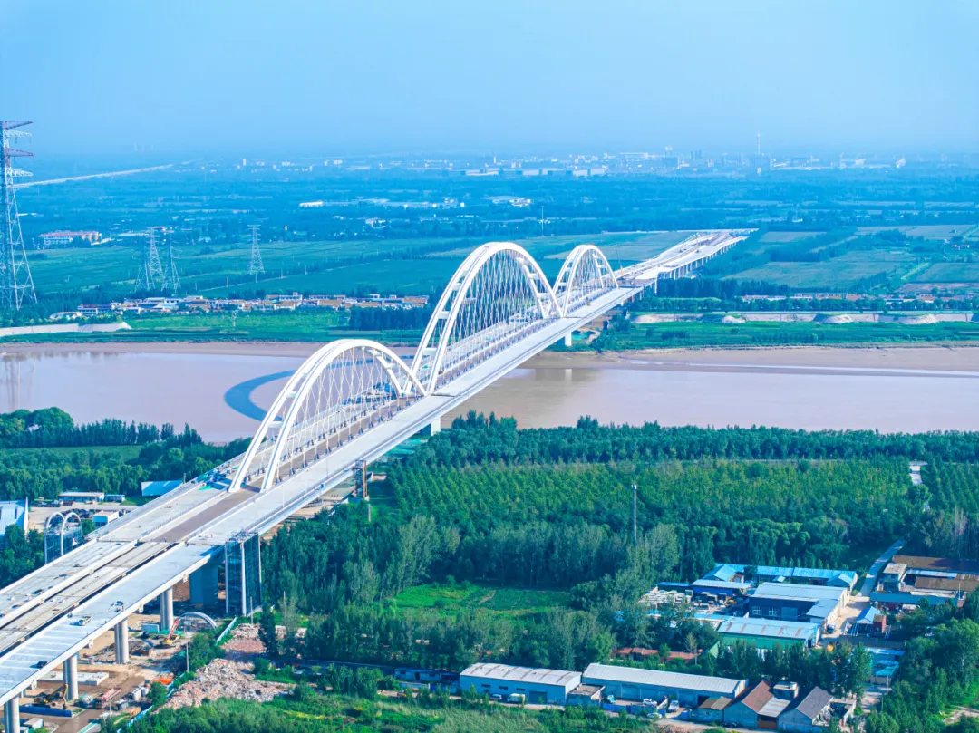 济南黄河齐鲁大桥位于山东省济南市槐荫区、天桥区,项目全长6742米,按照双向八车道一级公路标准建设,兼顾城市主干路功能,设计速度60公里/小时,主桥采用公轨合建的桥梁形式,中间预留城市轨道交通空间。济南黄河齐鲁大桥为黄河之上首座下承式网状系杆拱桥,主跨径达420米、宽60.7米,创世界同类型桥梁最大跨径、最大梁宽,其400Mpa超高应力幅拉索在桥梁建设领域首次研发应用。